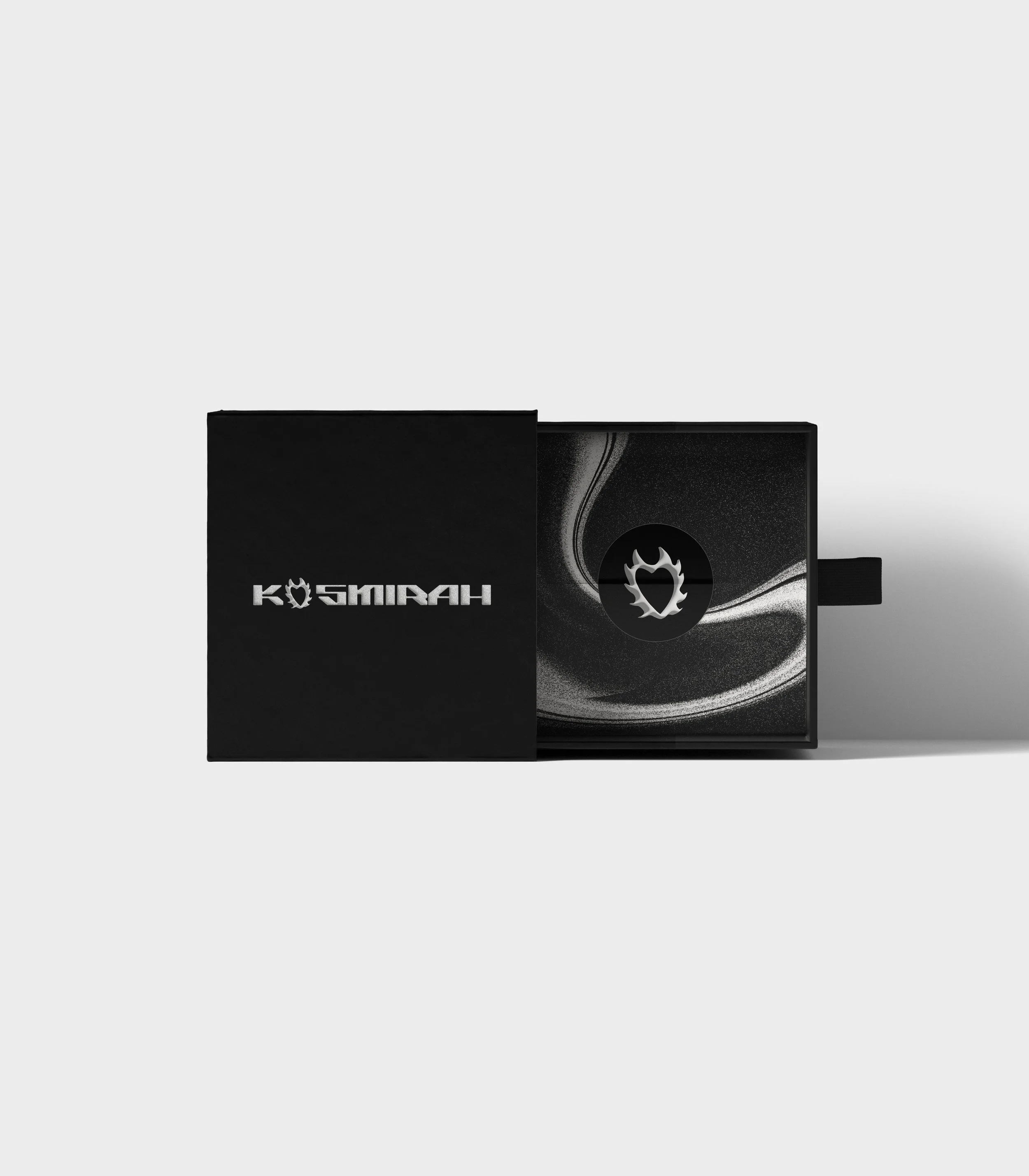 Komsirah is a jewelry artist based in Athens, Greece. She creates tiny sculptures made from metal. Kosmirah exudes a bold, unapologetic energy that fuses edgy minimalism with striking statement pieces. The logo’s symbol draws inspiration from one of Kosmirah's earliest and most cherished creations, the iconic heart necklace.